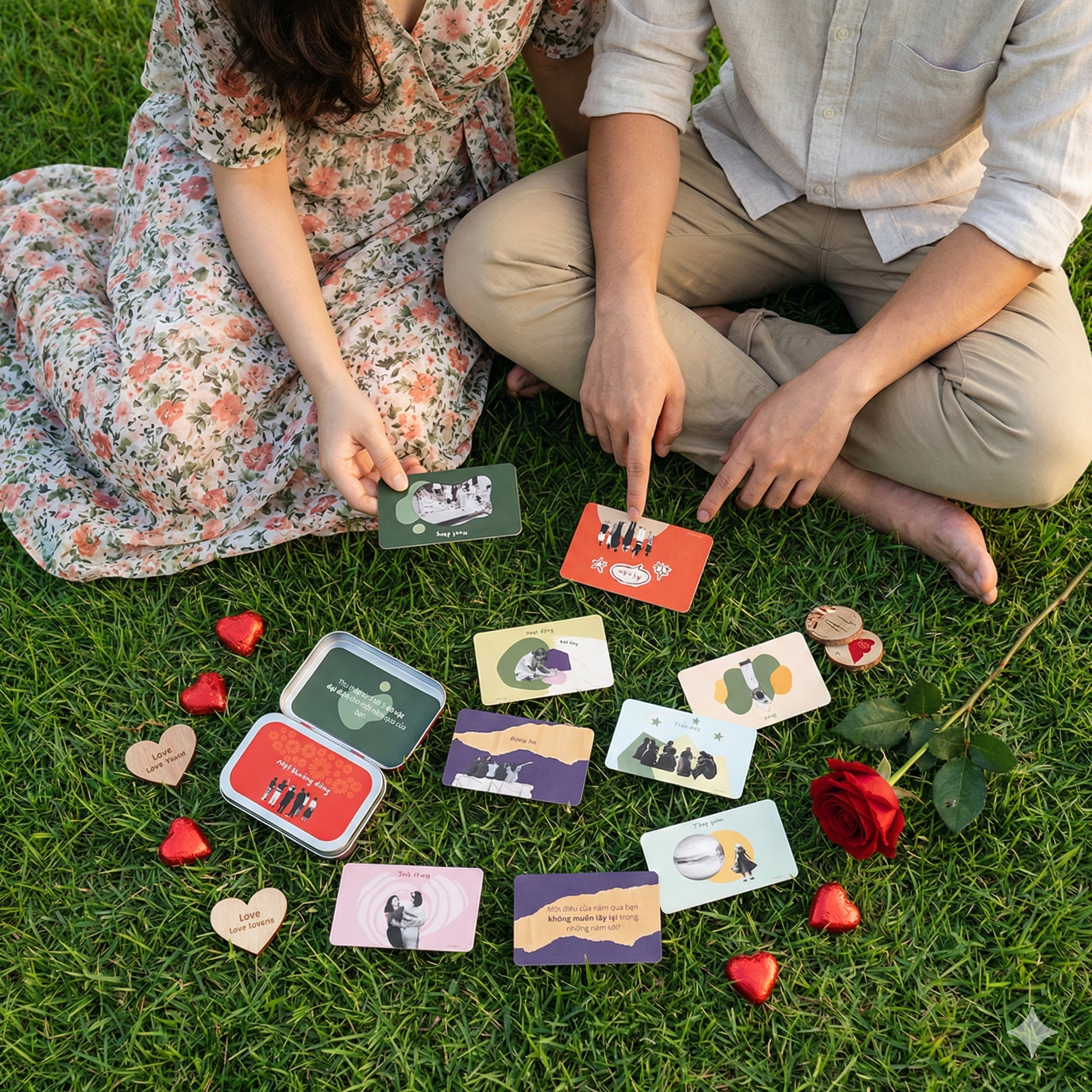 Bộ quà tặng đã kèm hướng dẫn setup buổi date để có thể sử dụng bộ thẻ cùng nhau
